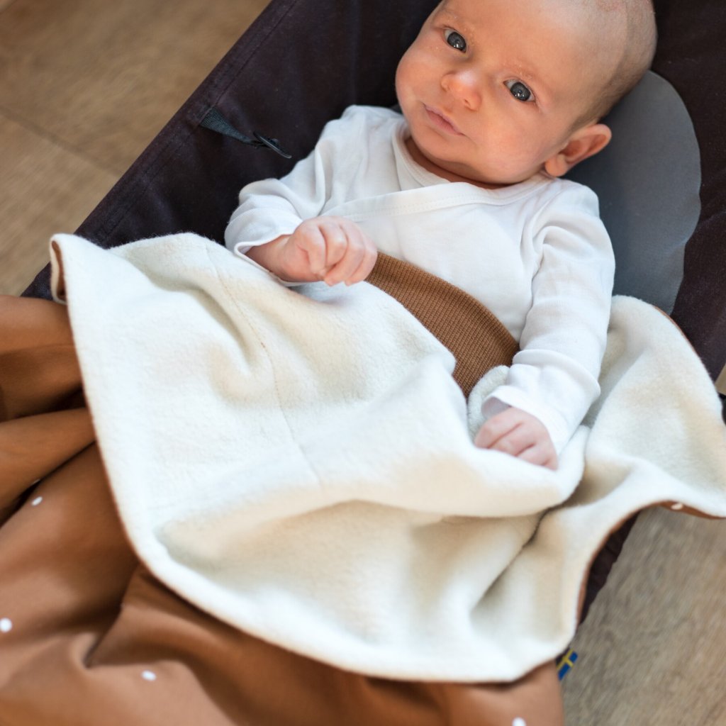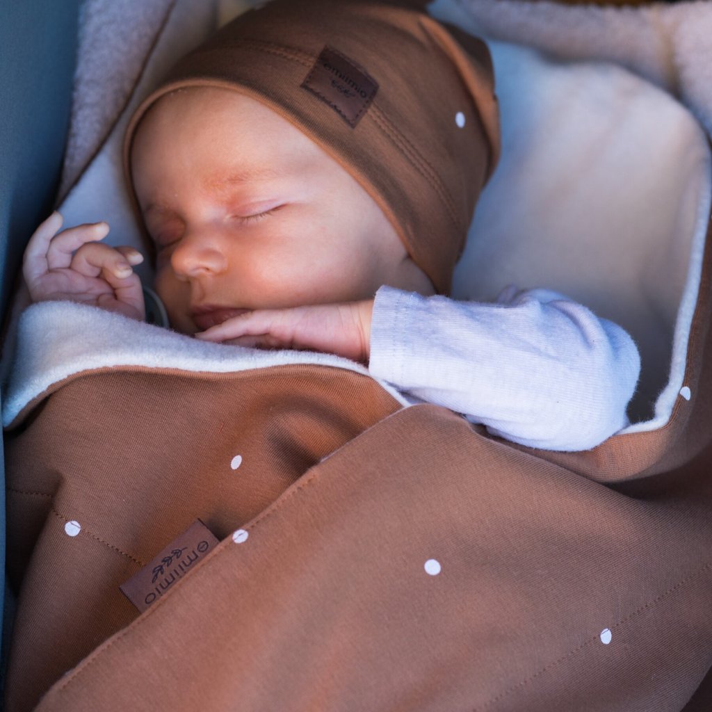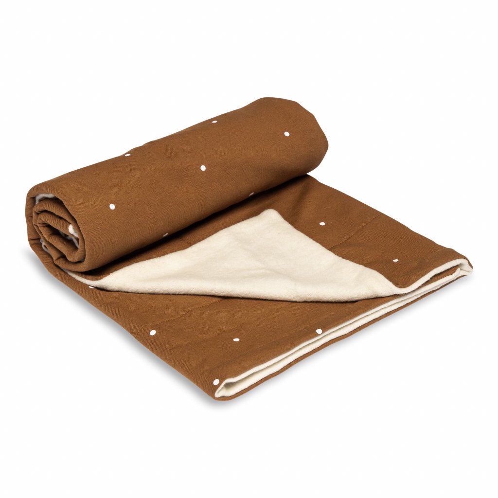 Rozkošná měkká deka pro miminko z BIO bavlněného beránka ve stylové karamelové barvě a oblíbeném puntíkatém vzoru. Praktická dětská deka, která vaše miminko zahřeje v postýlce, kočárku i na cestách.