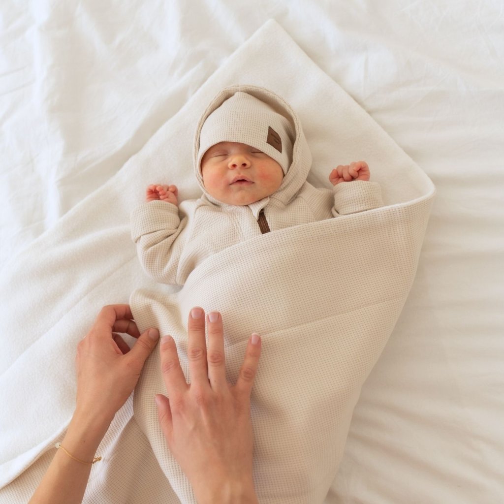 Rozkošná 100% bavlněná deka pro miminko z BIO bavlněného beránka v kombinaci s příjemným vaflovým úpletem. Praktická dětská deka, která vaše miminko zahřeje v postýlce, kočárku i na cestách.