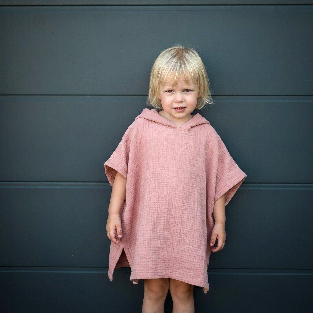 Praktické dětské letní mušelínové pončo by na žádné letní dovolené nemělo chybět! Univerzální střih s kapucí, jemný, prodyšný a velmi savý materiál a barvy, které dokonale ladí. Pončo je ideální pro miminka i předškoláky – využijete jej jako osušku, ochranu před sluníčkem i před prochladnutím.