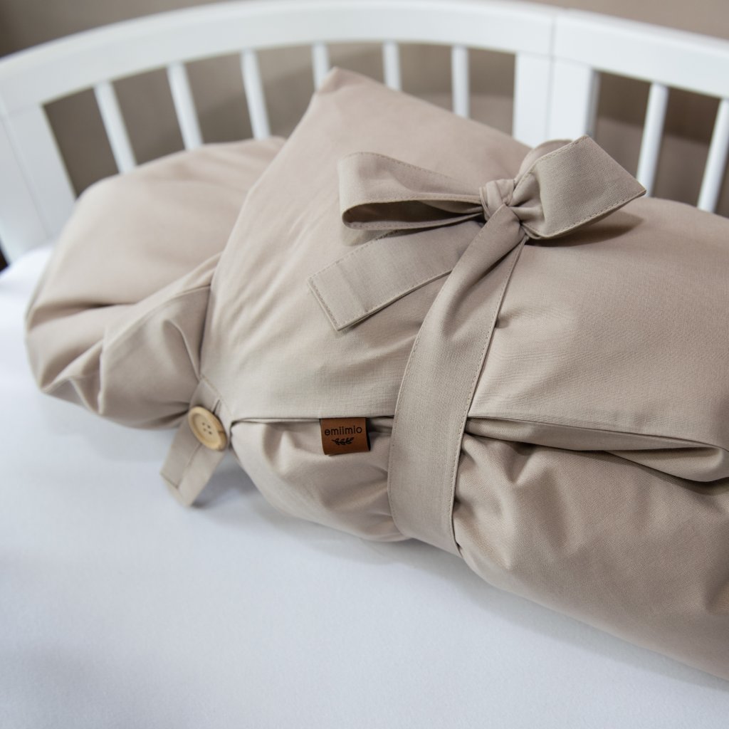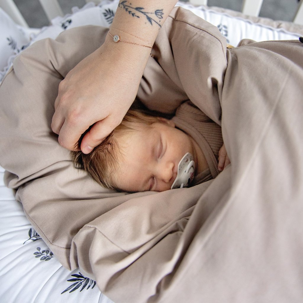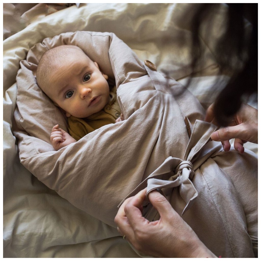 Kvalitní péřová zavinovačka pro miminko v neutrální béžové barvě.