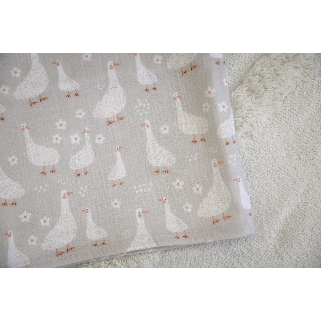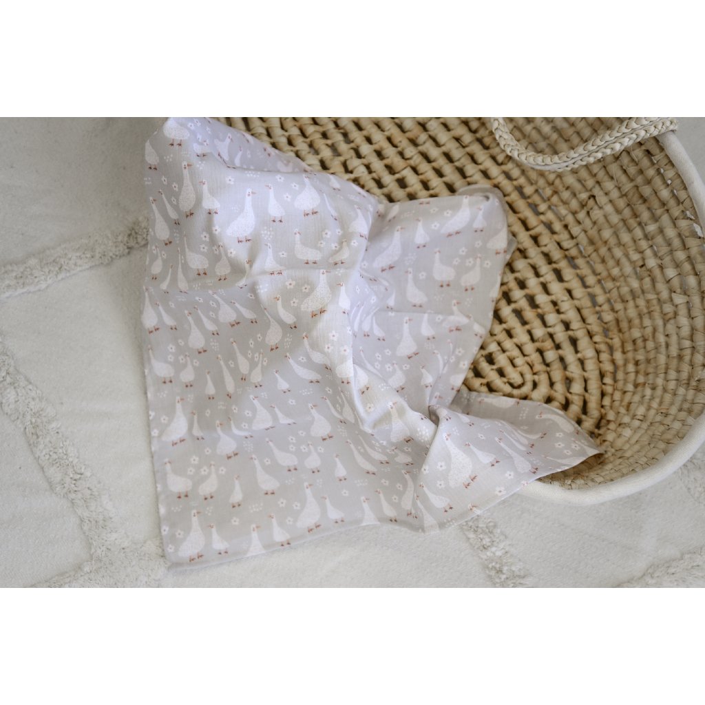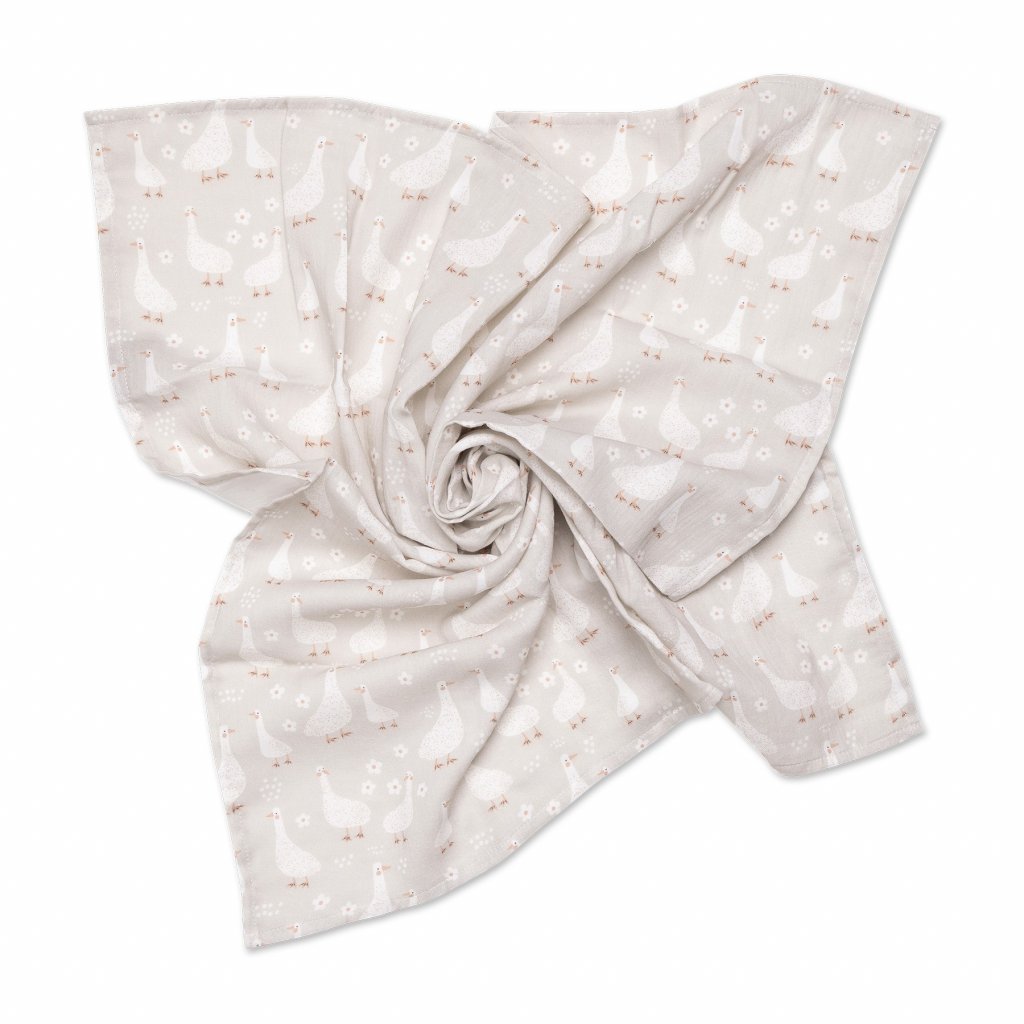 Lehká mušelínová dečka / plenka ve vzoru husy, rozměr 75×75 cm.