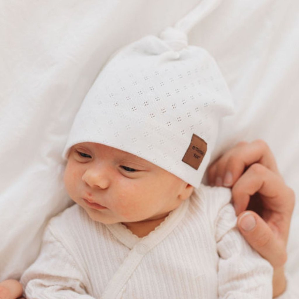 Novorozenecká čepice s uzlíkem / bílá