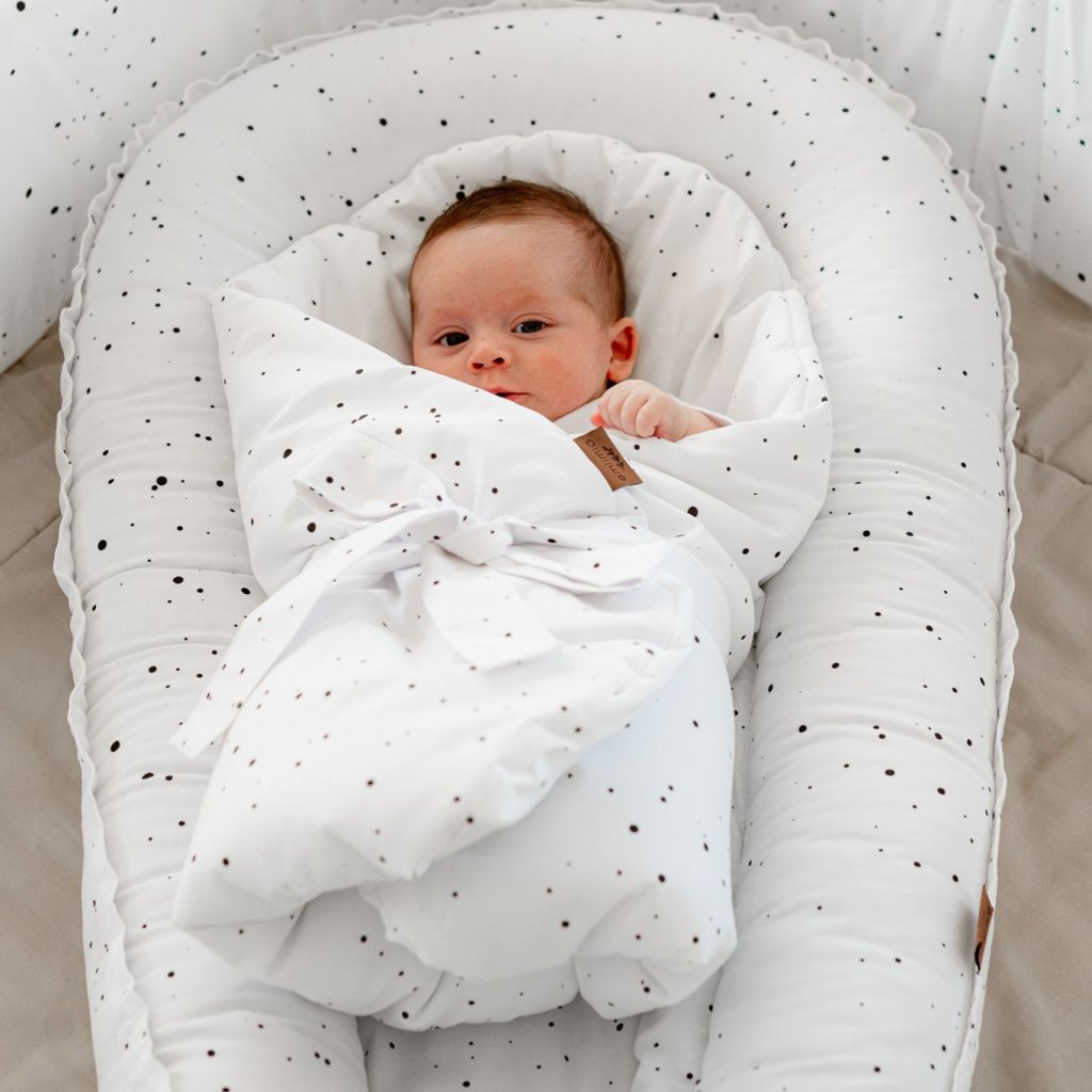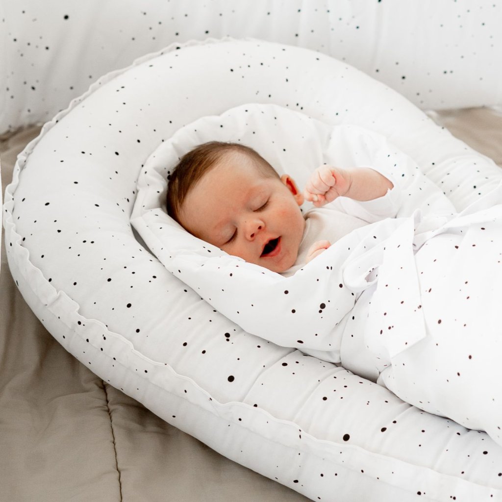 - Zajišťuje pohodlí – v měkkém hnízdečku se miminku spinká jako na obláčku