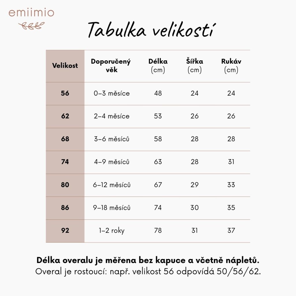 Naprosto krásný overal s čepičkou. Materiál je skvělý, kvalitní. Každý nám overálek chválí. Budeme určitě kupovat i ve větší velikosti.