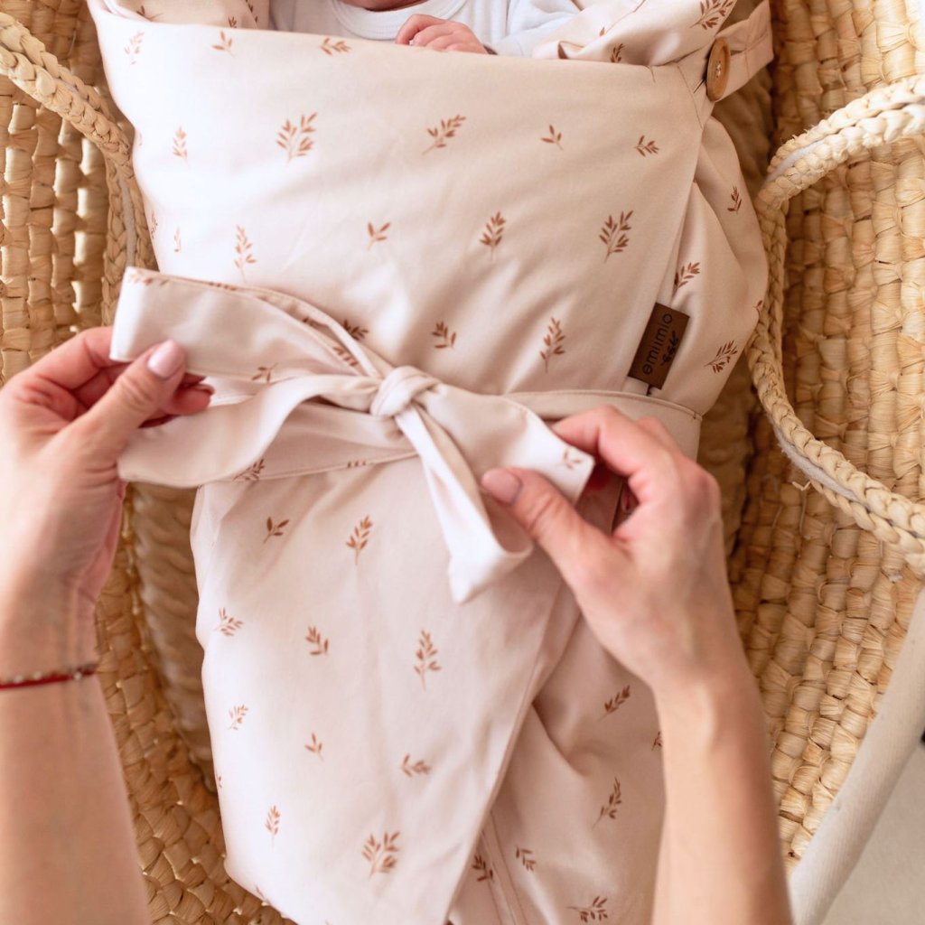 Kvalitní péřová zavinovačka pro miminko v jemném motivu větvičky.