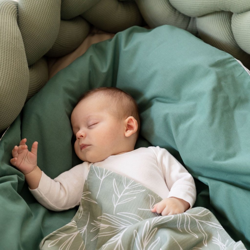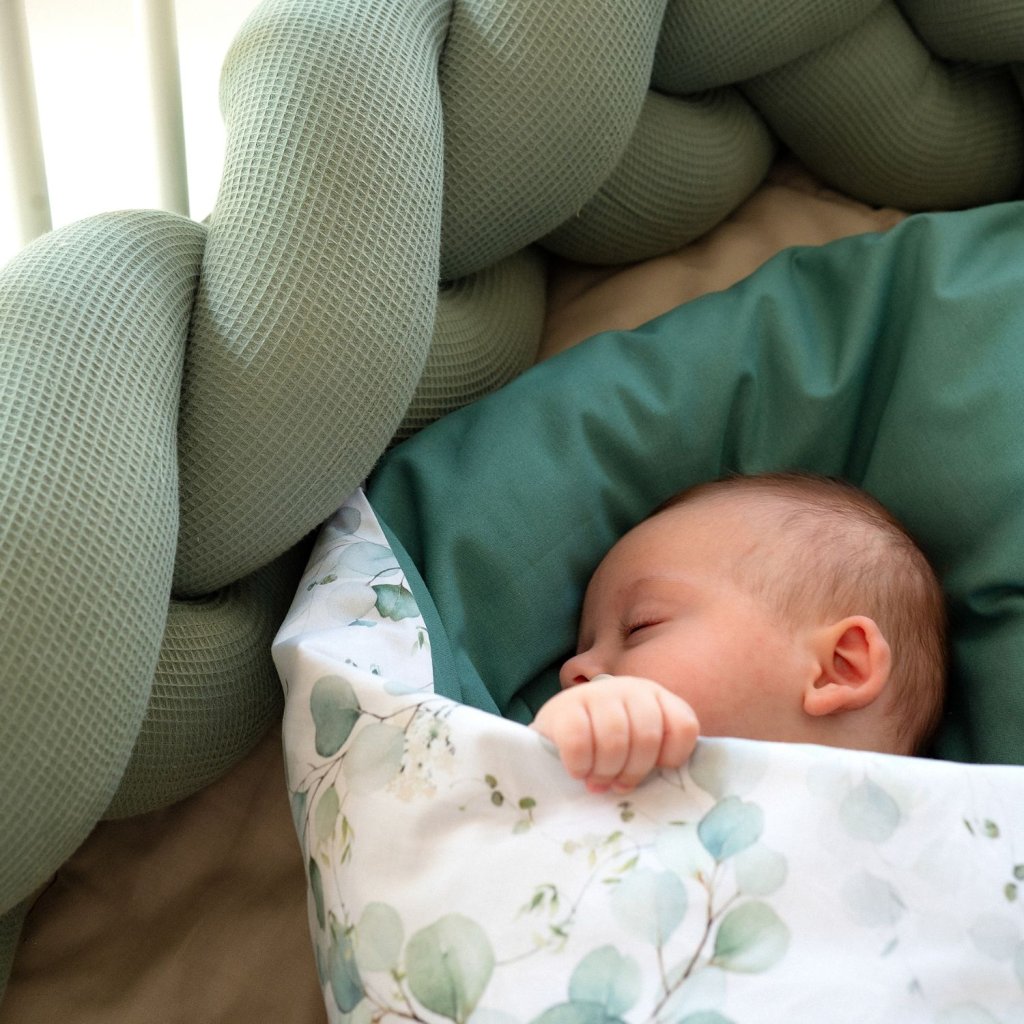 Kvalitní péřová zavinovačka pro miminko v přírodním motivu eukalyptus.