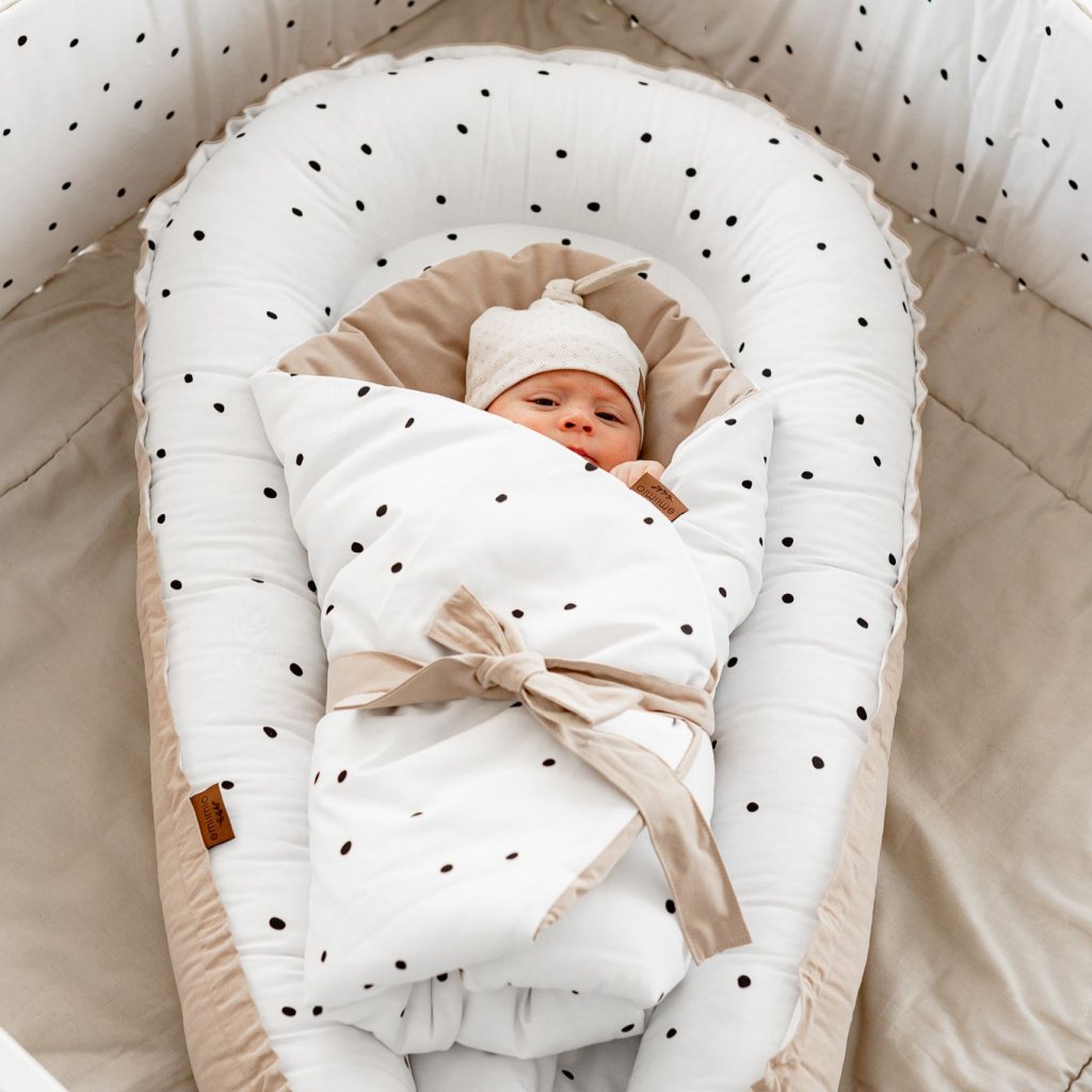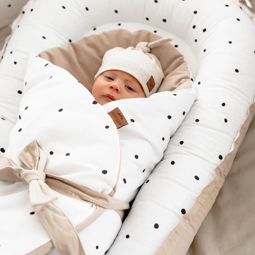 Oblíbená rychlozavinovačka pro miminko v oblíbeném vzoru dots s béžovou bavlnou. Dopřejte svému děťátku pocit bezpečí, tepla a pohodlí při spánku i odpočinku v této tradiční rychlozavinovačce, která vám usnadní nejen uspávání, ale také manipulaci v prvních měsících života vašeho miminka.