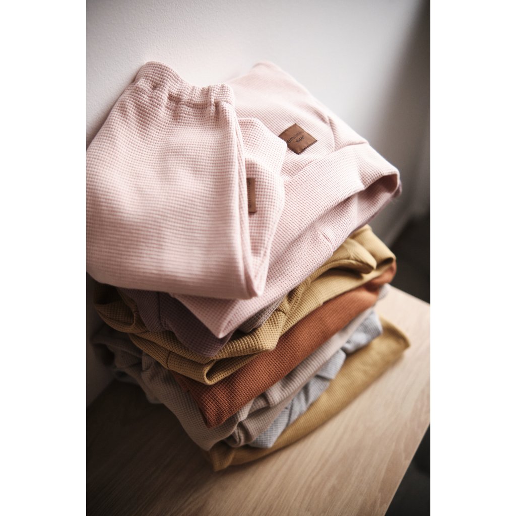 Stylové tepláky vaflové kolekce mají pohodlný léty ověřený střih, díky kterému se dítě může volně pohybovat a objevovat svět. V pase mají jemnou měkkou gumu, takže netlačí na bříško, ale zároveň dobře drží a nepadají. Nohavice zakončují manžety, které se dají nejprve ohrnout a jak dítko povyroste, můžete je povolit a získáte tak další velikost.