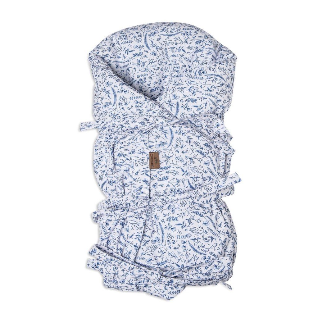 Šněrovací zavinovačka pro miminko v něžném motivu modrá louka. Nechte své miminko odpočinout v měkké a pohodlné zavinovačce na šněrování plněné hypoalergenním dutým vláknem s povlakem ze 100% bavlny.