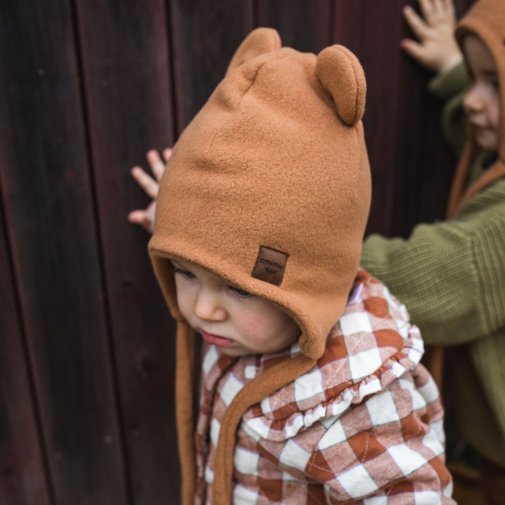 Zimní čepice ušanka / bio bavlněný beránek karamelový