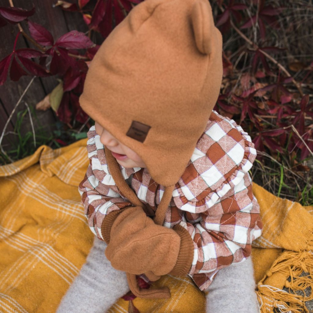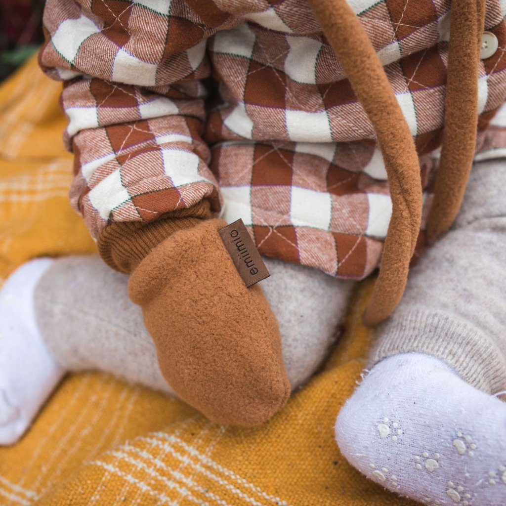 Hřejivé dětské zimní rukavice jsou díky svému materiálu vhodné pro nejmenší miminka již od narození. Jsou ušité z nejjemnějšího 100% bio bavlněného beránka, který je vysoce kvalitní a příjemný k pokožce miminek. Díky univerzální karamelové barvě se hodí pro holčičky i chlapečky. Rukavičky šijeme ve dvou velikostech: 0–6 měsíců bez tkaničky a 6–18 měsíců s tkaníčkou. Oba typy mají pružný náplet, který zajistí snadné oblékání!